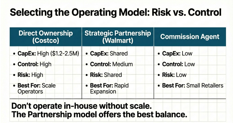 Don’t try to operate fuel in-house unless you’re already in the fuel business. Fuel operations require specialized knowledge—environmental compliance, underground storage tank monitoring, fuel quality testing, supply contract negotiation. Retailers who tried to self-operate fuel operations faced 2-3x higher costs and frequent compliance issues. Safeway attempted in-house fuel operations in 2008-2011 and eventually sold their fuel assets to Sobeys after struggling with operational complexity and thin margins.
